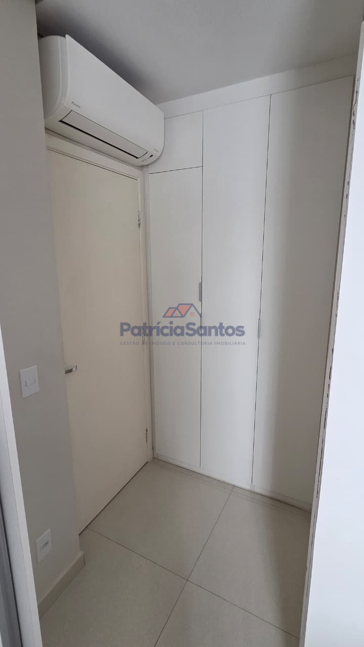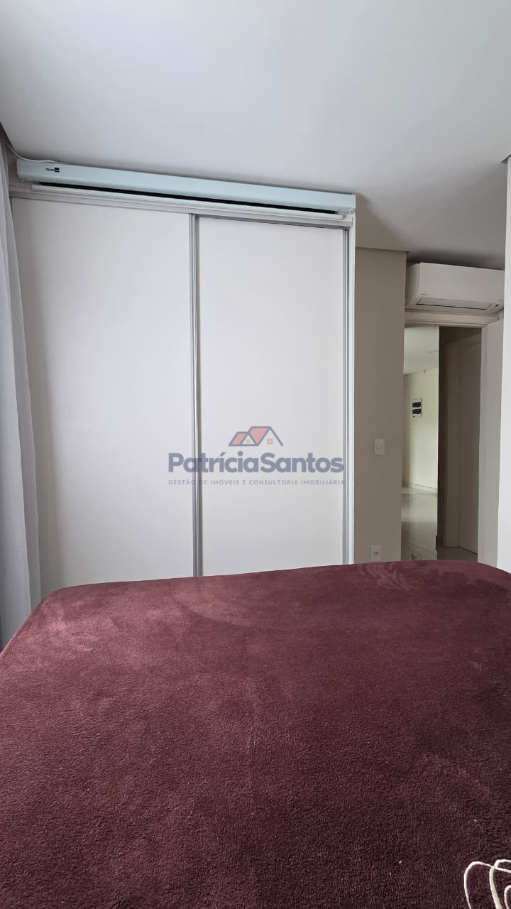 Suíte com guarda-roupa planejado, cabeceira e armários de cabeceira até o teto, além de ar-condicionado multisplit de 9.000 BTUs.