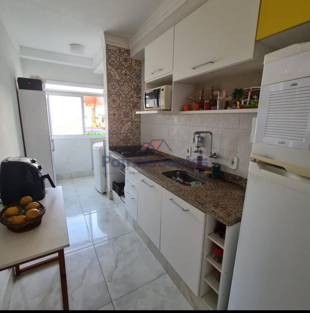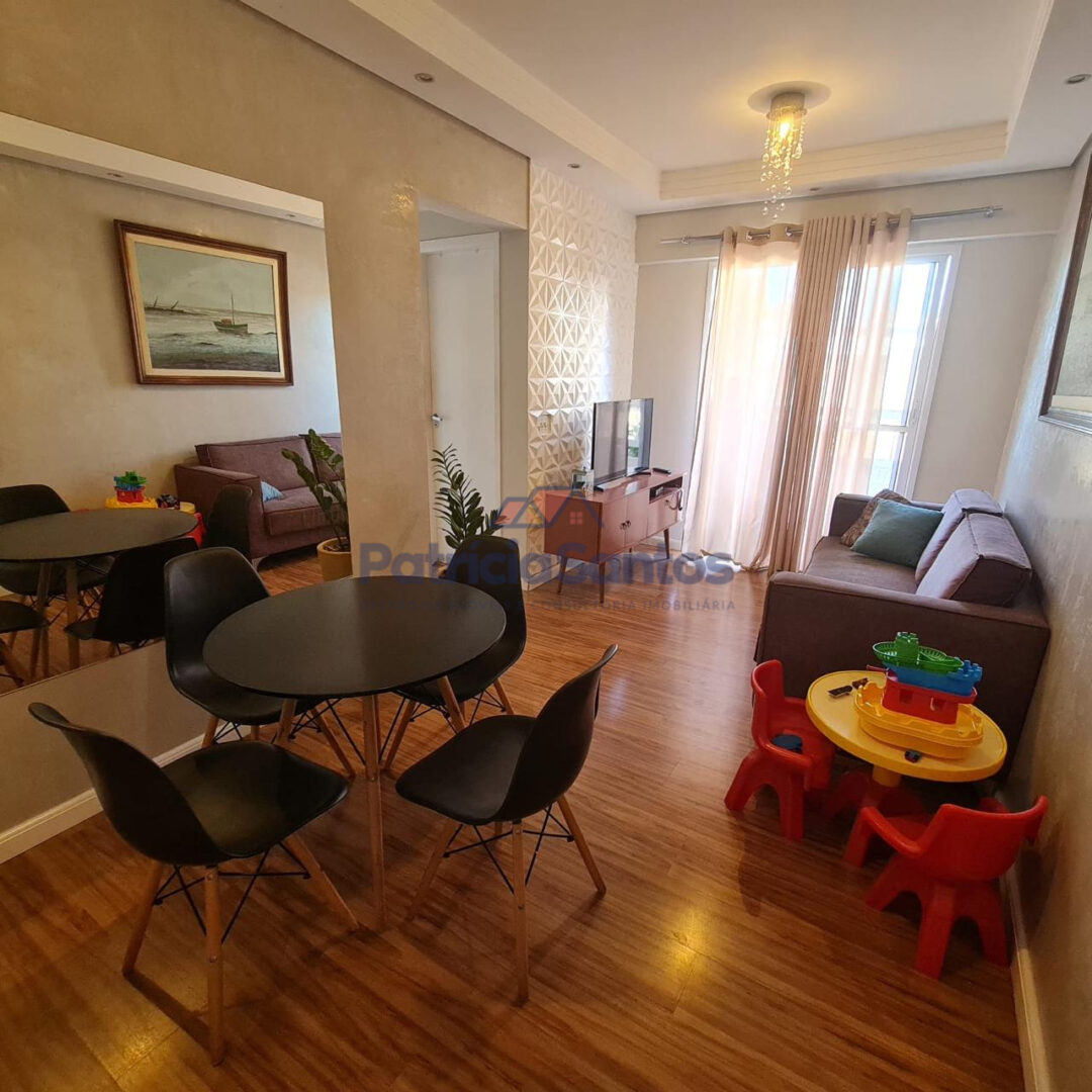 Apartamento com sacada, sala 2 ambientes, 1 WC, 2 dormitórios, cozinha, área de serviços com armários planejados e 1 vaga de garagem.