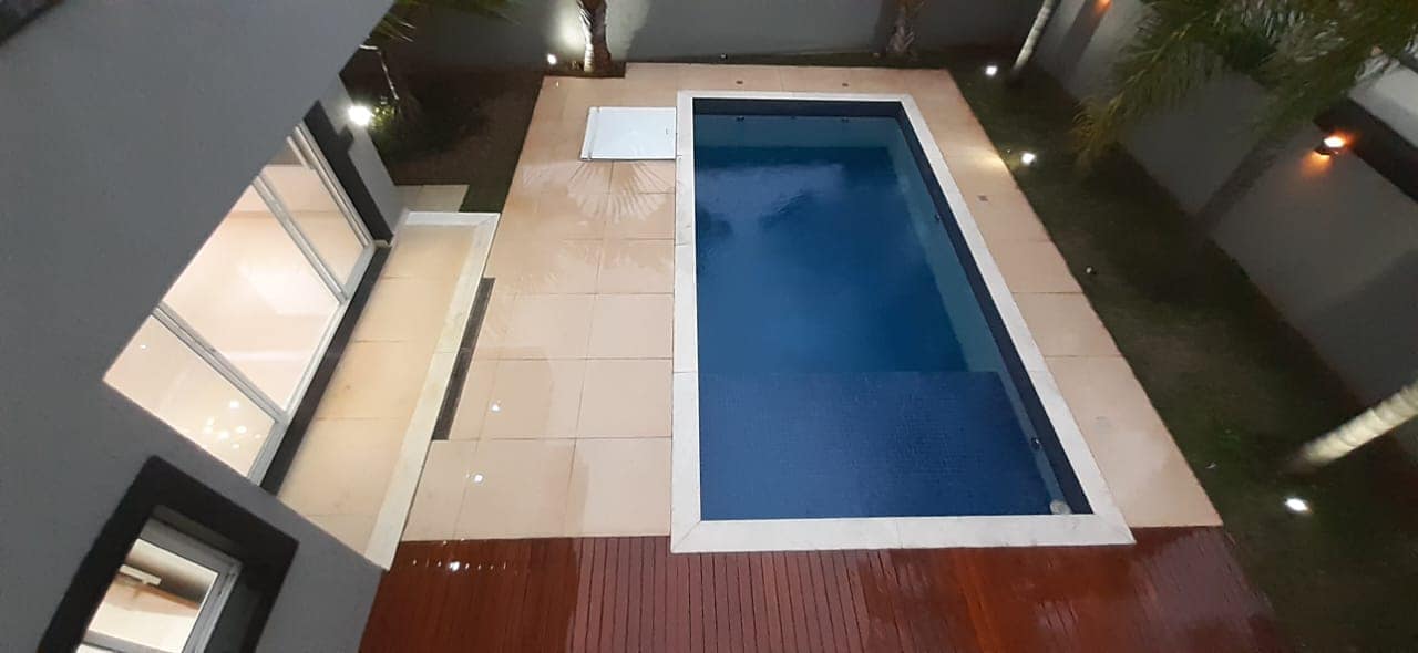 ✅ Piscina com deck e iluminação em LED colorido, além de ducha e hidromassagem relaxante.